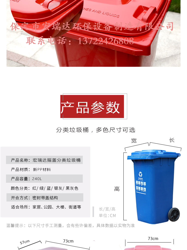 HRD-FL240干湿垃圾分类塑料垃圾桶